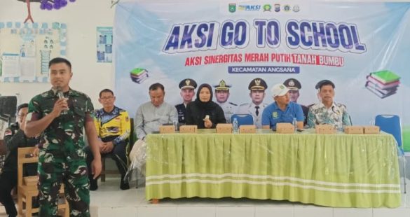 BATULICIN – Pemerintah Kabupaten Tanah Bumbu bekerja sama dengan Kodim 1022/Tnb, Polres Tanah Bumbu, dan KPU Tanah Bumbu menggelar kegiatan Aksi Go To School sebagai bagian dari rangkaian Aksi Sinergitas Merah Putih. Kegiatan ini dilaksanakan di Kecamatan Angsana, Jumat (14/11/2025).