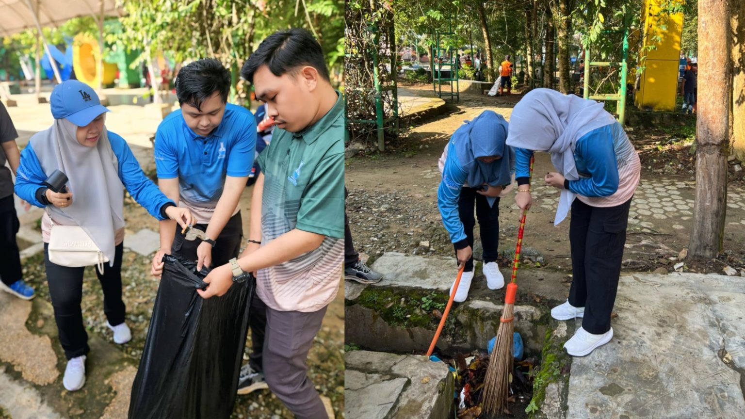 Para peserta Aksi Jumat Bersih bekerja sama untuk menjaga kebersihan fasilitas umum, mencerminkan sinergi kuat antara pemerintah dan masyarakat.