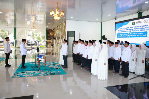 BATULICIN – Bupati Tanah Bumbu, H. Andi Rudi Latif, S.H., yang akrab disapa Bang Arul, secara resmi melantik dan mengukuhkan pengurus Lembaga Pengembangan Tilawatil Qur’an (LPTQ) Kabupaten Tanah Bumbu periode 2025–2030. Kegiatan berlangsung khidmat di Pendopo Serambi Madinah, Sabtu (19/4/2025).Pelantikan Pengurus LPTQ tersebut mengusung tema “BerAKSI dengan Akhlak Qur’ani Menuju Tanah Bumbu yang Maju, Makmur, dan Beradab”, yang menekankan pentingnya nilai-nilai Al-Qur’an dalam membentuk karakter masyarakat dan kemajuan daerah.