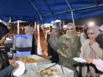 BATULICIN – Ketua Tim Penggerak PKK Kabupaten Tanah Bumbu, Andi Irmayani Rudi Latif, meninjau langsung stand produk UMKM lokal khas Tanah Bumbu