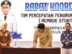 BATULICIN – Bupati Tanah Bumbu Andi Rudi Latif memimpin langsung Rapat Koordinasi (Rakoor) Tim Percepatan Penurunan Stunting (TPPS) dan Rembuk Stunting Tingkat