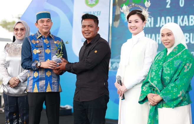 HUT ke-23 Tanbu, Bupati Andi Rudi Latif dan Artis Asty Ananta Serahkan Bibit Tomat Cherry Stevia untuk Petani Lokal