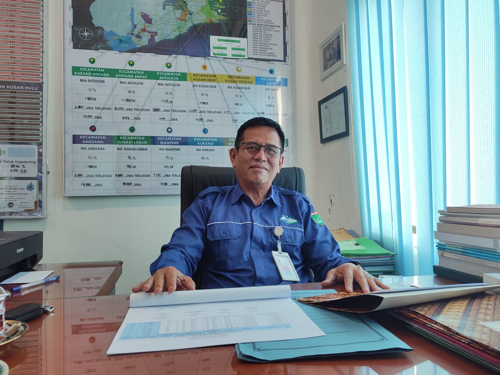 ” Alhamdulillah dengan bantuan Pemda, kita terus mendapatkan bantuan penambahan jarjngan cakupan pelayanam air bersih ke masyarakat. DAK ini sangat membantu pengembangan layanan air bersih, ” katanya.