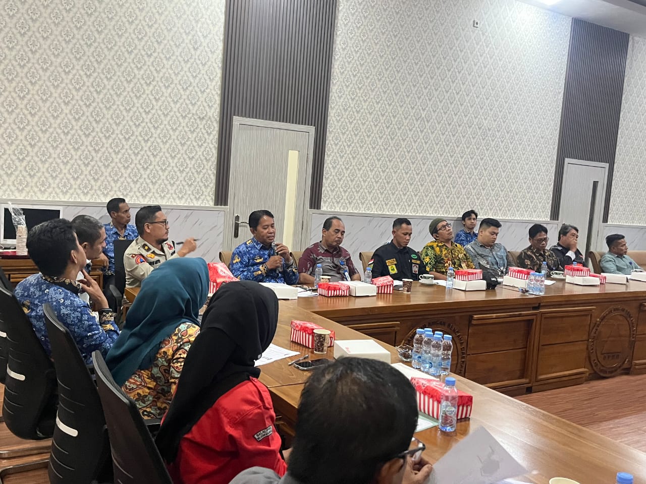 Diskusi dipimpin langsung oleh Kalaksa BPBD, membahas potensi risiko seperti banjir, tanah longsor, dan kebakaran hutan dan lahan (karhutla).