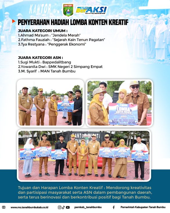 Pemkab Tanah Bumbu Serahkan Hadiah Lomba Konten Kreatif
