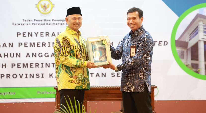 Penyerahan LKPD oleh Wakil Bupati Tanah Bumbu, H. Bahsanuddin, kepada Kepala BPK Perwakilan Provinsi Kalsel, Andriyanto, S.E., Ak., M.A.B., GRCA, GRCP, CA, ACPA, ERMAP, CSFA.