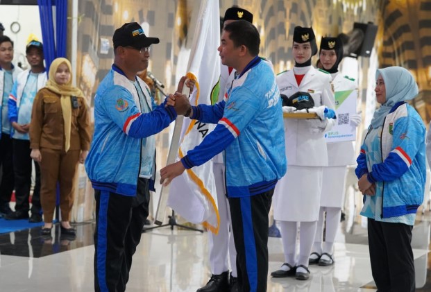 Prosesi pelepasan berlangsung penuh semangat yang digelar di Pendopo Kantor Bupati Tanah Bumbu di Batulicin, Senin (20/10/2025).