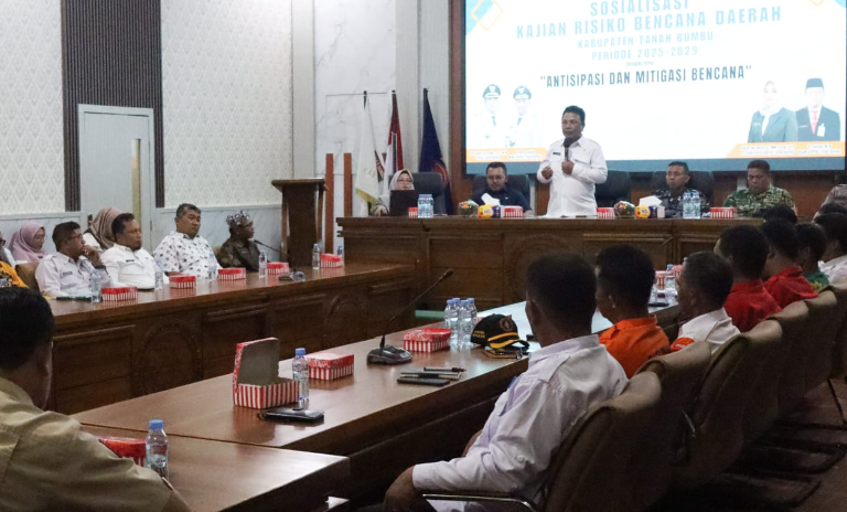 BATULICIN –Pemerintah Kabupaten Tanah Bumbu menggelar kegiatan konsultasi publik dan sosialisasi Dokumen Kajian Risiko Bencana (KRB) periode 2025–2029. Jumat (25/04/2025), bertempat di ruang rapat Pusdalops BPBD Tanbu.