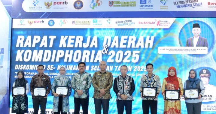 Kedua penghargaan ini diberikan dalam rangkaian Rakerda yang digelar di Banjarbaru, 25 sampai 27 September 2025. Rakerda sebagai forum strategis untuk menyelaraskan arah kebijakan, program, dan kolaborasi antar Dinas Kominfo, Statistik, dan Persandian se-Kalimantan Selatan.